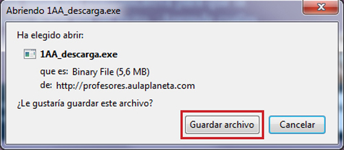 - En la ventana de Chrome elige "Guardar archivo" y selecciona la carpeta donde quieres guardar el instalador.