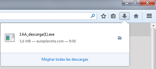 - Al finalizar la descarga, haz clic en el botón "Descargas" del navegador y haz clic sobre el archivo para comenzar la instalación. Si aparece un mensaje de aviso del sistema, escoge la opción “Ejecutar”.