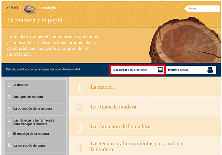 aulaPlaneta te permite descargar el Cuaderno de aprendizaje para utilizarlo sin conexión cuando lo desees. Solo tienes que hacer clic en el botón "Descargar a mi ordenador" que aparece en la parte superior del cuaderno.
