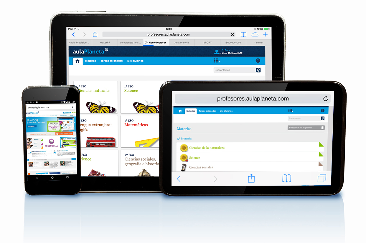 aulaPlaneta te permite una navegación fácil e intuitiva, no solo desde el ordenador sino también desde distintos dispositivos móviles. Puedes utilizar aulaPlaneta en Mac (iOS) o PC (Windows, GNU/Linux), móviles, PDI y tabletas (Android e iOS).