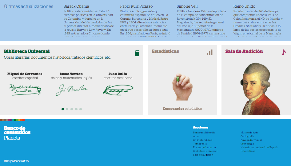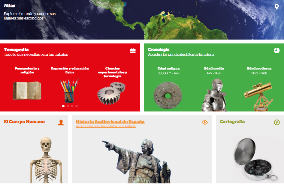 La página principal ofrece las últimas actualizaciones de contenidos y los artículos recomendados del día, y da acceso, a través de la barra de menú, a las diversas secciones, que organizan el contenido por temáticas y tipologías, para que te resulte mucho más cómodo navegar entre los materiales.