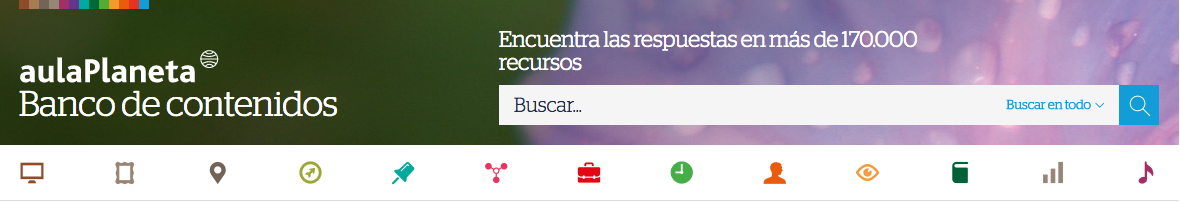 En la parte superior de la página encontrarás siempre el Buscador del Banco de contenidos, que permite buscar recursos en todas las secciones o en aquellas que te interesen, para que localices fácilmente los materiales que necesites.