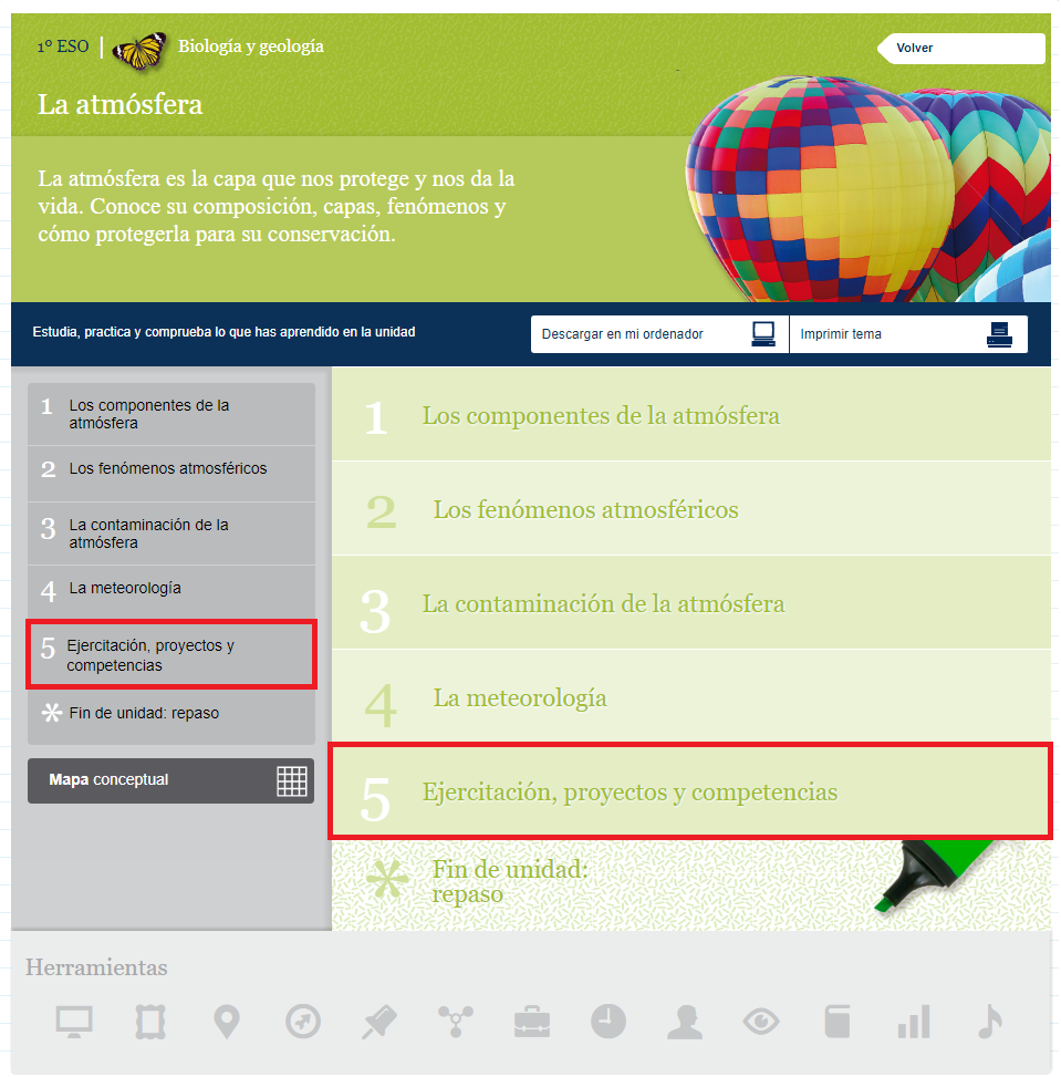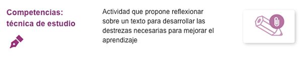 En los contenidos del Cuaderno de aprendizaje encontrarás una sección que puede denominarse "Competencias" o "Ejercitación, proyectos y competencias", "Ejercitación y competencias" o similar. Aparece siempre antes de "Fin de unidad: repaso" y en ella encontrarás diversas actividades complementarias con las que no solo afianzarás aspectos del temario, sino que además trabajarás las competencias básicas, aprenderás técnicas de estudio o mejorarás tu comprensión lectora.