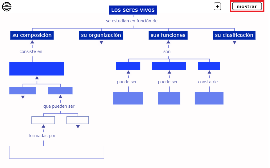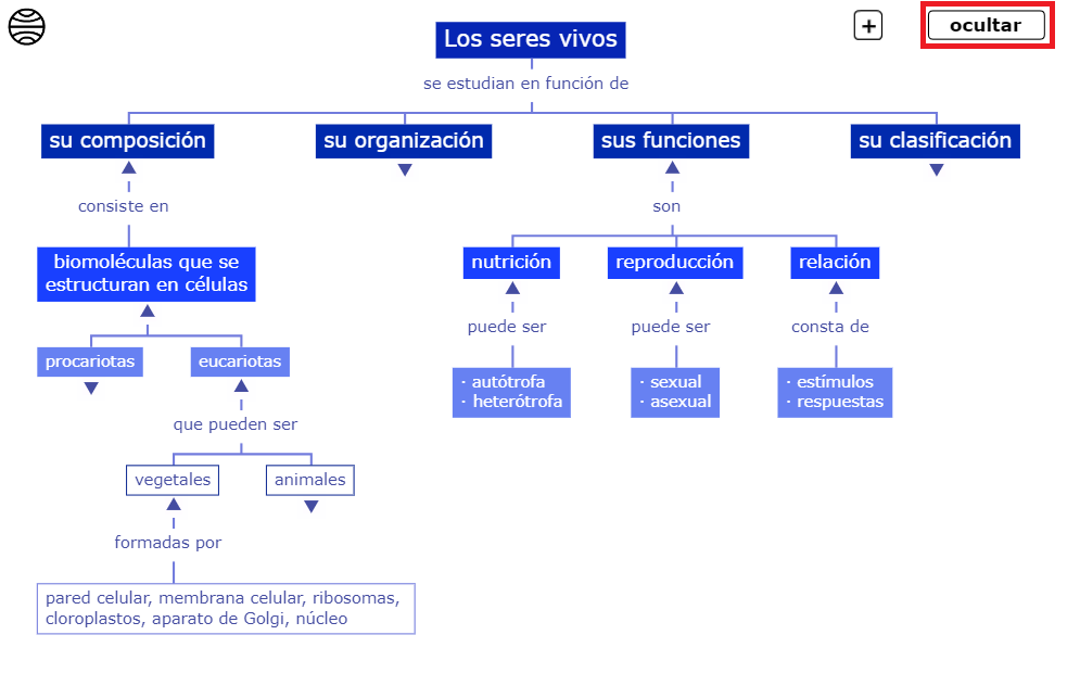El mapa se abrirá en una nueva ventana o pestaña de tu navegador. Haz clic en las ramas para que vayan desplegándose los conceptos del tema. Si haces clic en "ocultar" se mostrarán las casillas vacías y podrás comprobar si recuerdas los conceptos. Para volver a ver el contenido, haz clic en "mostrar".