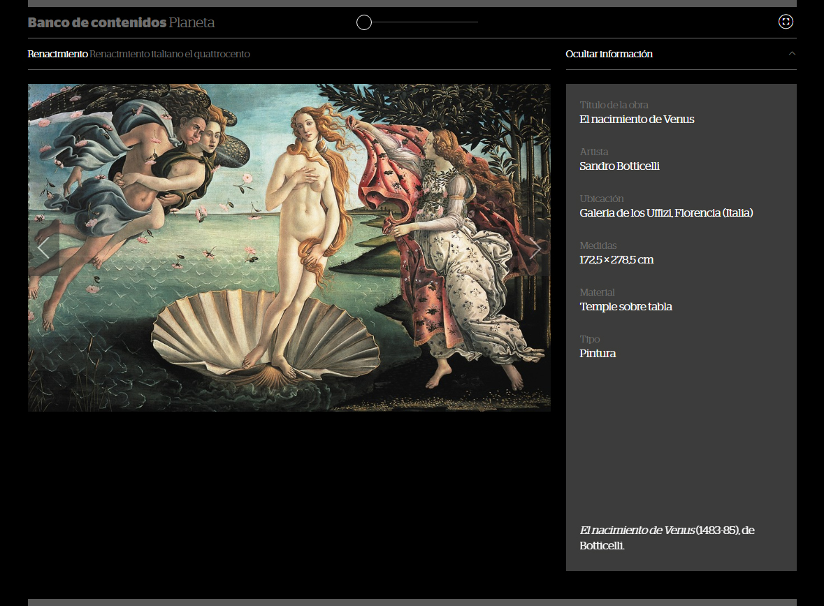 Puede servirte para comparar estilos pictóricos, o contrastar la obra de artistas del mismo período. También para analizar una obra en profundidad o conocer los principales datos y características de las obras más importantes de la historia del arte.