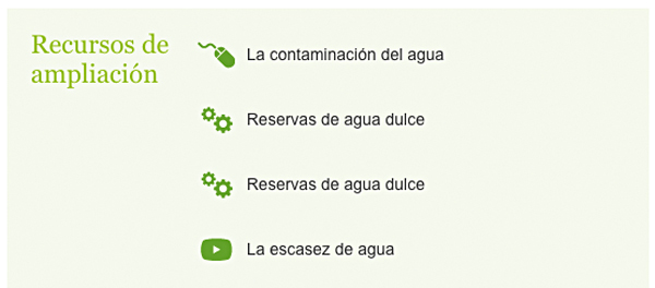 En algunos de los Cuadernos de aprendizaje también pudes encontrar listados denominados “Recursos de ampliación”. Se trata de documentos, páginas web, enlaces al Banco de contenidos y otras propuestas que tu profesor ha seleccionado para que profundices en el tema o trabajes conocimientos relacionados.