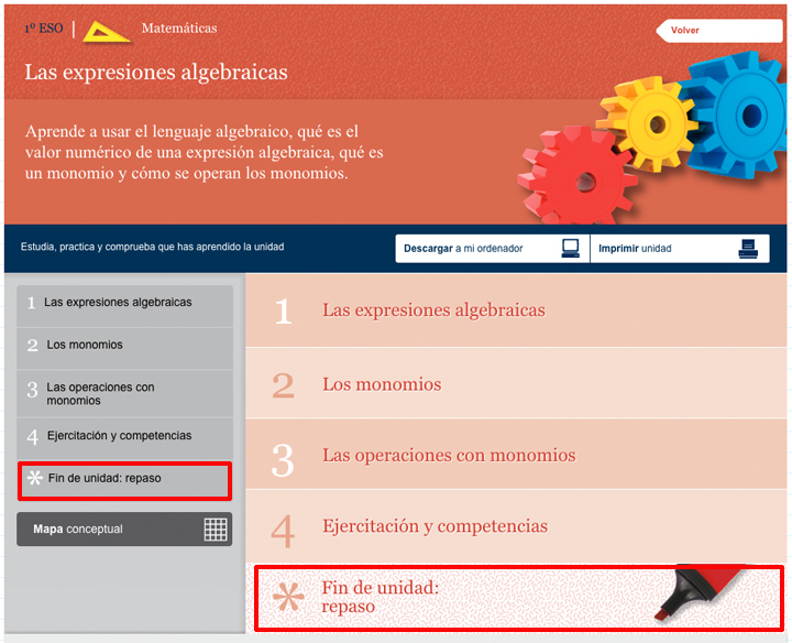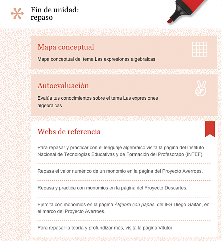 Al final de cada Cuaderno de aprendizaje encontrarás una sección denominada “Fin de unidad: repaso”.
