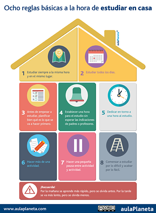 • Ten en cuenta que por la mañana se aprende más rápido, pero se olvida antes y por la tarde se va más lento, pero se olvida menos.