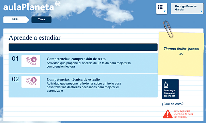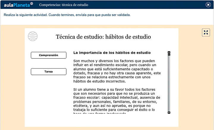 Además de tener en cuenta todos estos consejos y utilizar para ello las herramientas que te ofrece aulaPlaneta, también puedes encontrar en tu Cuaderno de estudio o en las tareas que te asigne tu profesor actividades especialmente pensadas para que desarrolles destrezas útiles para tu aprendizaje.
